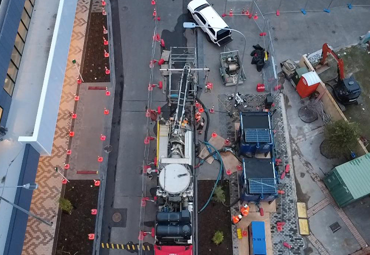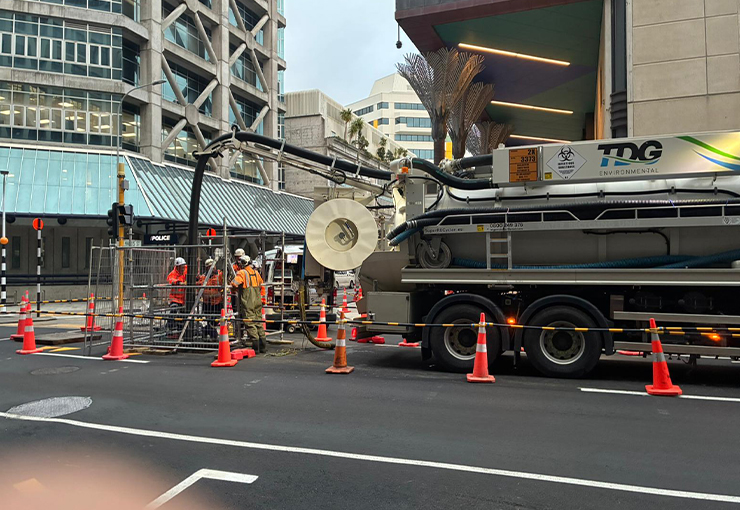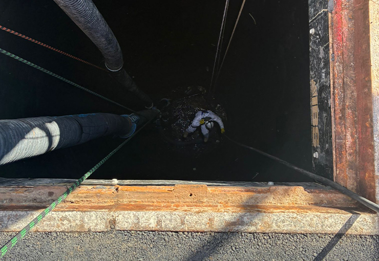 The team deployed vacuum trucks, pumps and filtration systems to safely remove liquids and debris while maintaining environmental compliance. High-pressure flushing was carried out across multiple sections of the pipeline, supported by repeated confined space entries to remove large debris that could not be extracted mechanically.